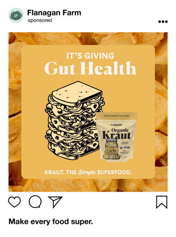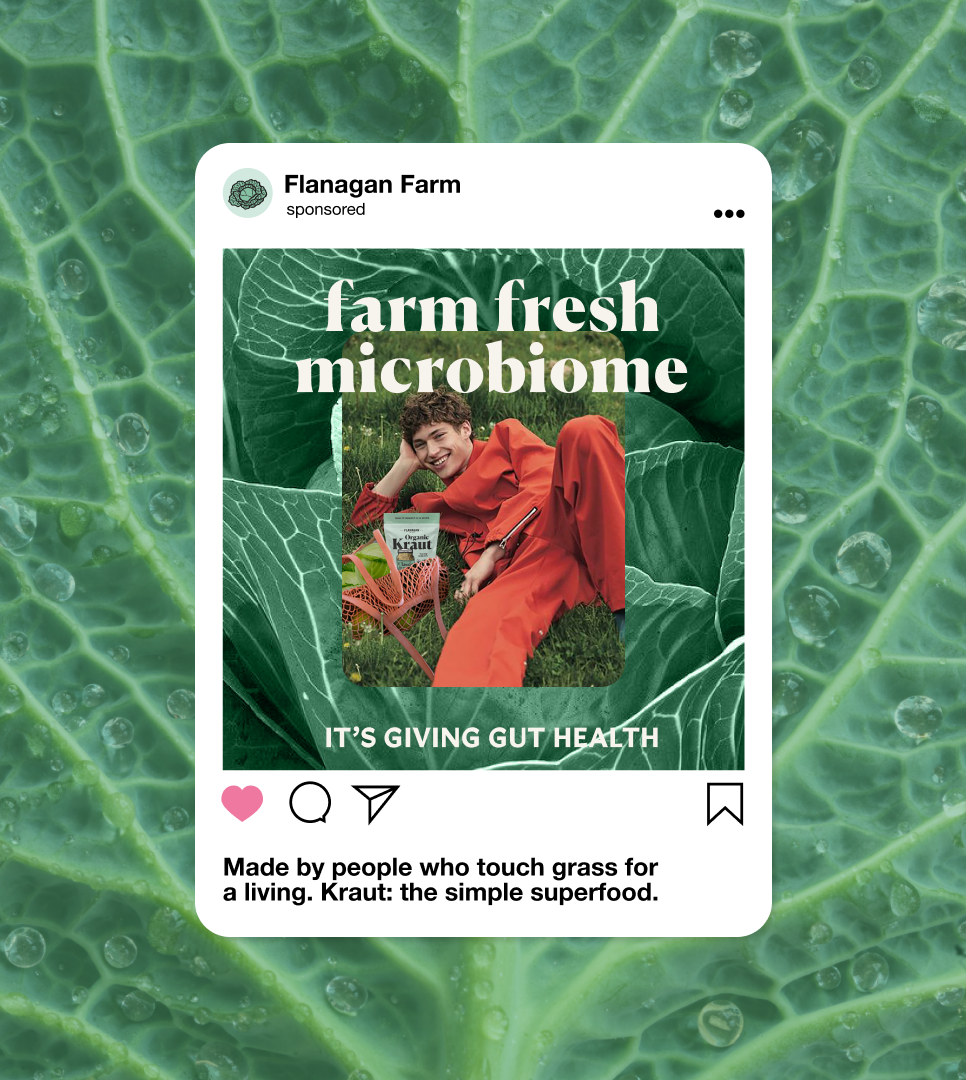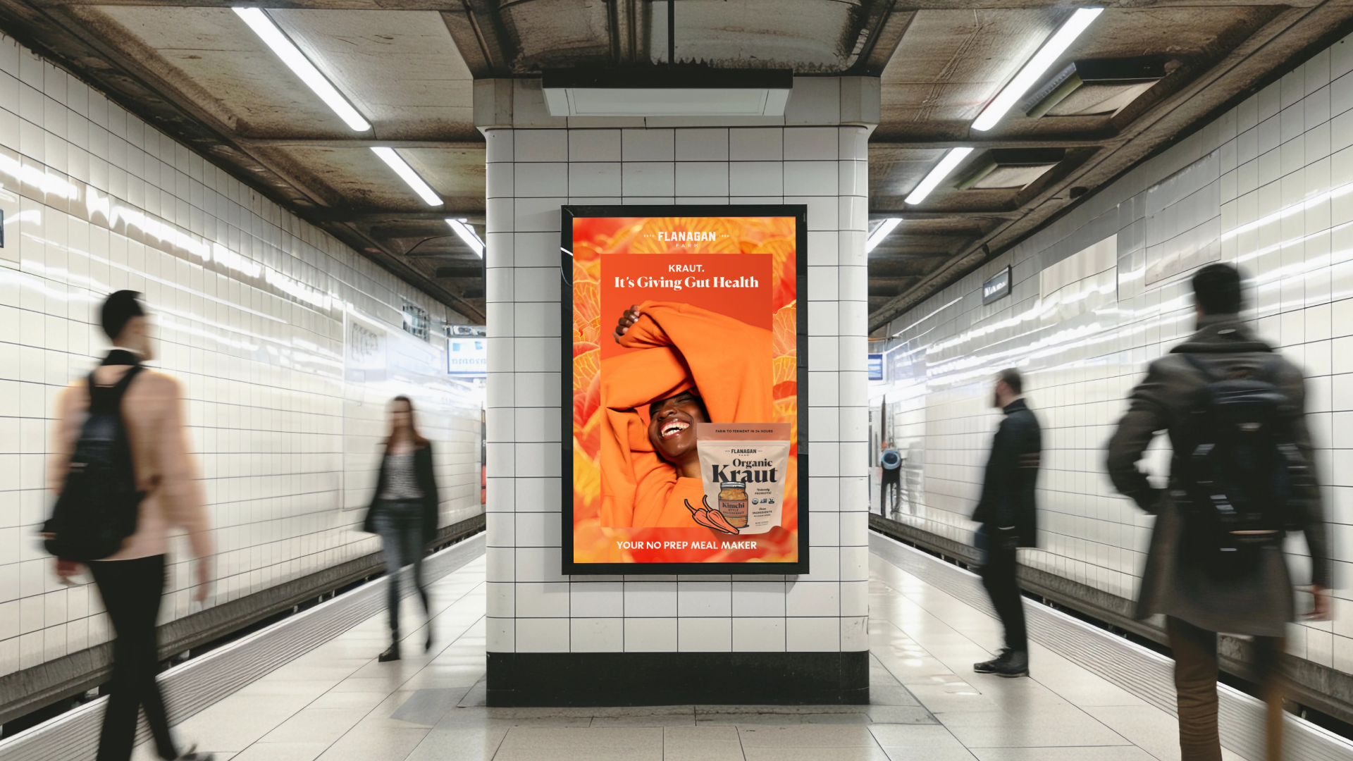 Flanagan Farm is putting sauerkraut back on the table, up front and center. I helped develop messaging for both the brand and the “It’s Giving Gut Health” campaign, which highlights the health benefits of sauerkraut and its ease of incorporation into daily routines. We employed a witty and conversational voice across the website, social, creator briefs, and out-of-home assets.