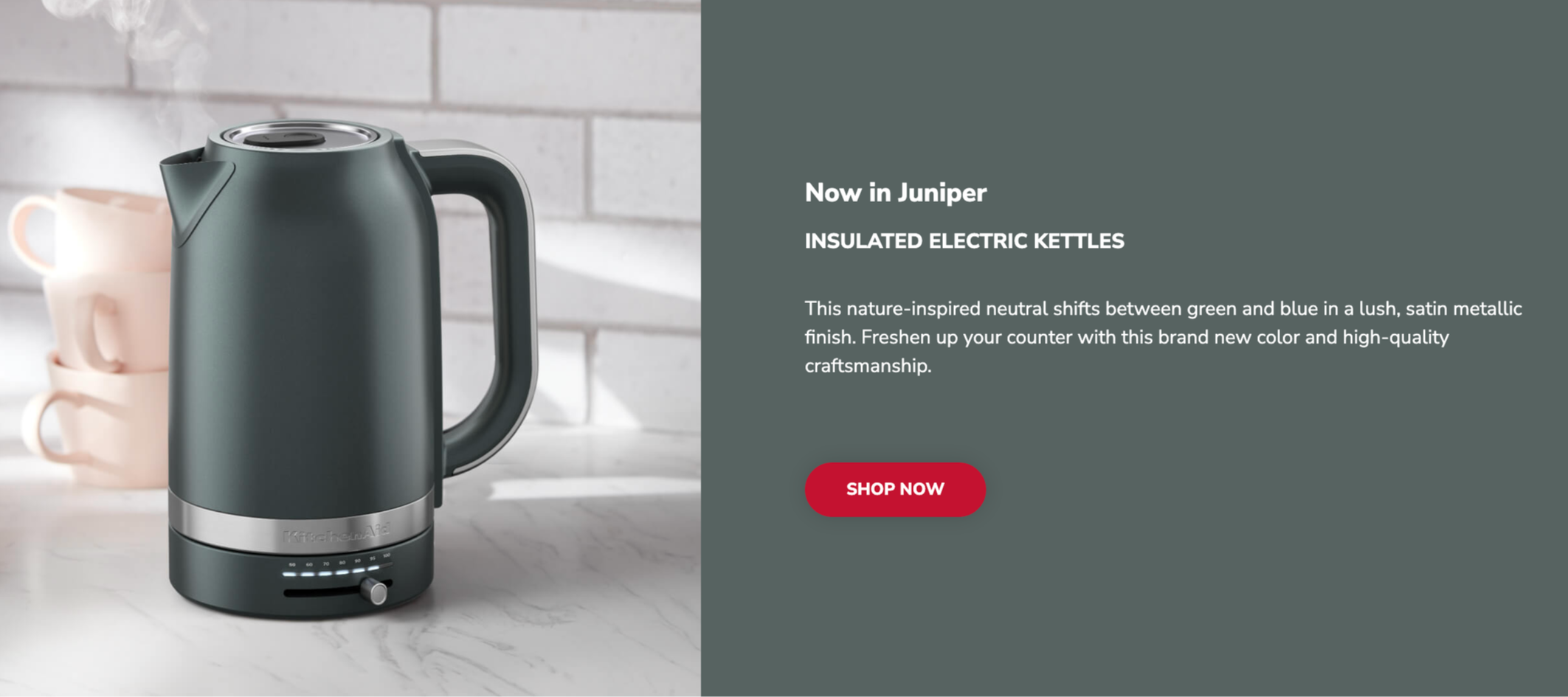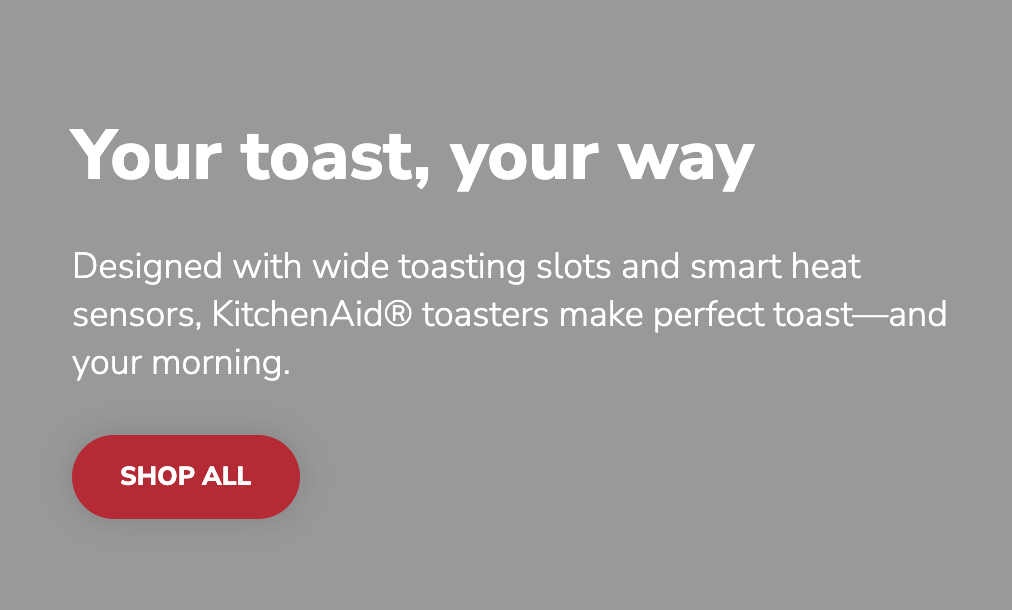 Copy refresh for KitchenAid® Toasters and Kettles home pages. The goal was to give an overview of the lineup and clearly explain the products in a succinct manner. We also needed to highlight the new color-way, Juniper, and a new kettle and toaster bundle launch.