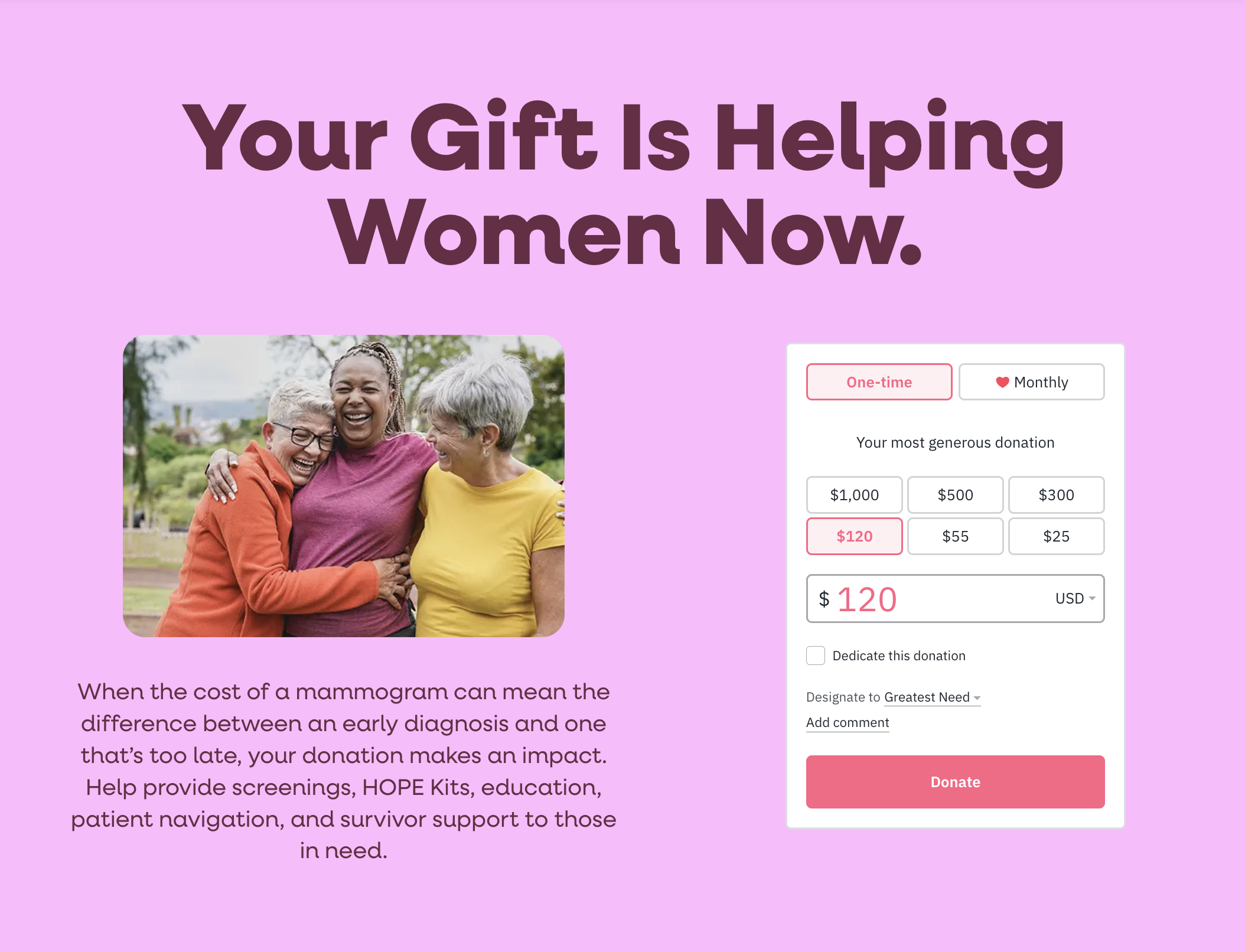 For Breast Cancer Awareness Month, I led the development of the campaign “Helping Women Now.” I crafted the core narrative and wrote the script for the hero spot. I also created taglines and messaging strategies for various audiences.